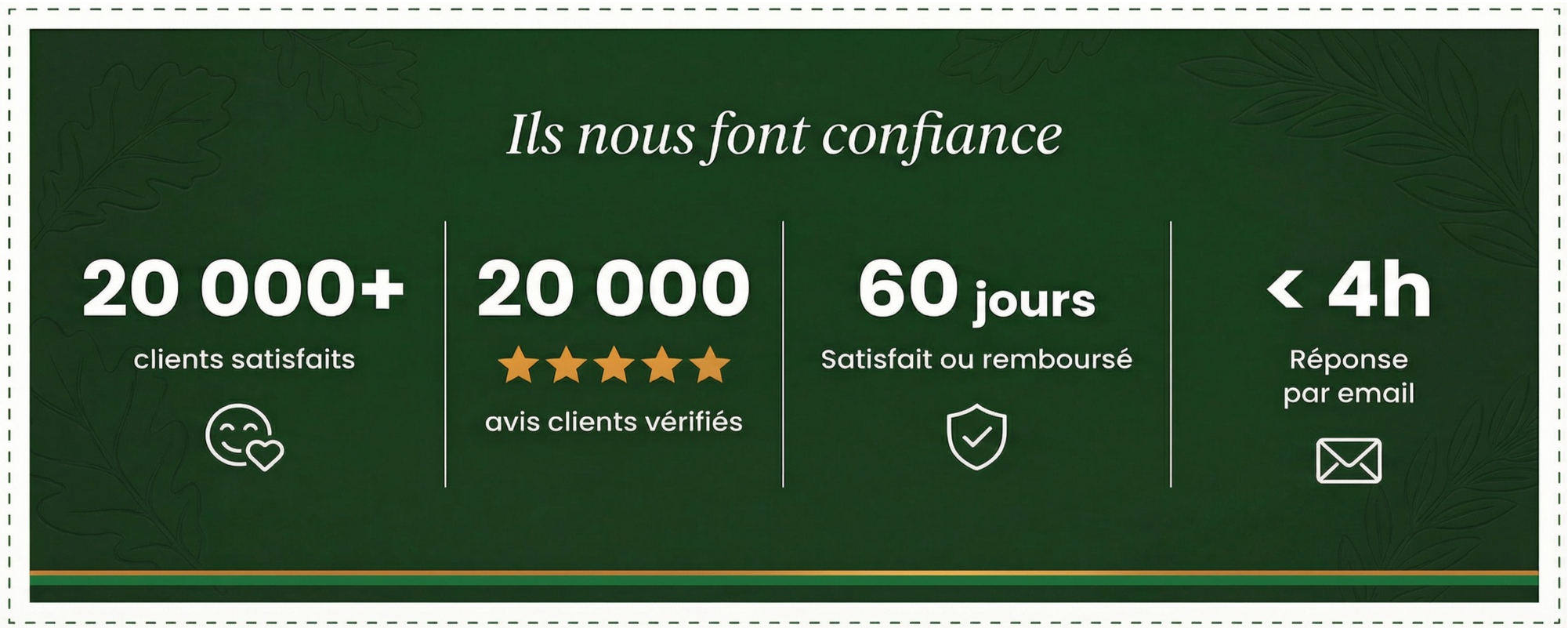 Essayez nos produits sans risque, vous avez 60 jours pour les tester et être pleinement satisfait.