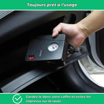 Le compresseur peut atteindre jusqu’à 100 PSI (7 bars), suffisant pour la plupart des pneus.
