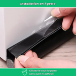 Il suffit de la glisser sous la porte, sans colle ni outil. Elle tient grâce à sa double mousse souple.
