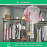 Chaque cintre possède 9 trous qui permettent de suspendre plusieurs pièces ou accessoires, facilitant l’organisation.